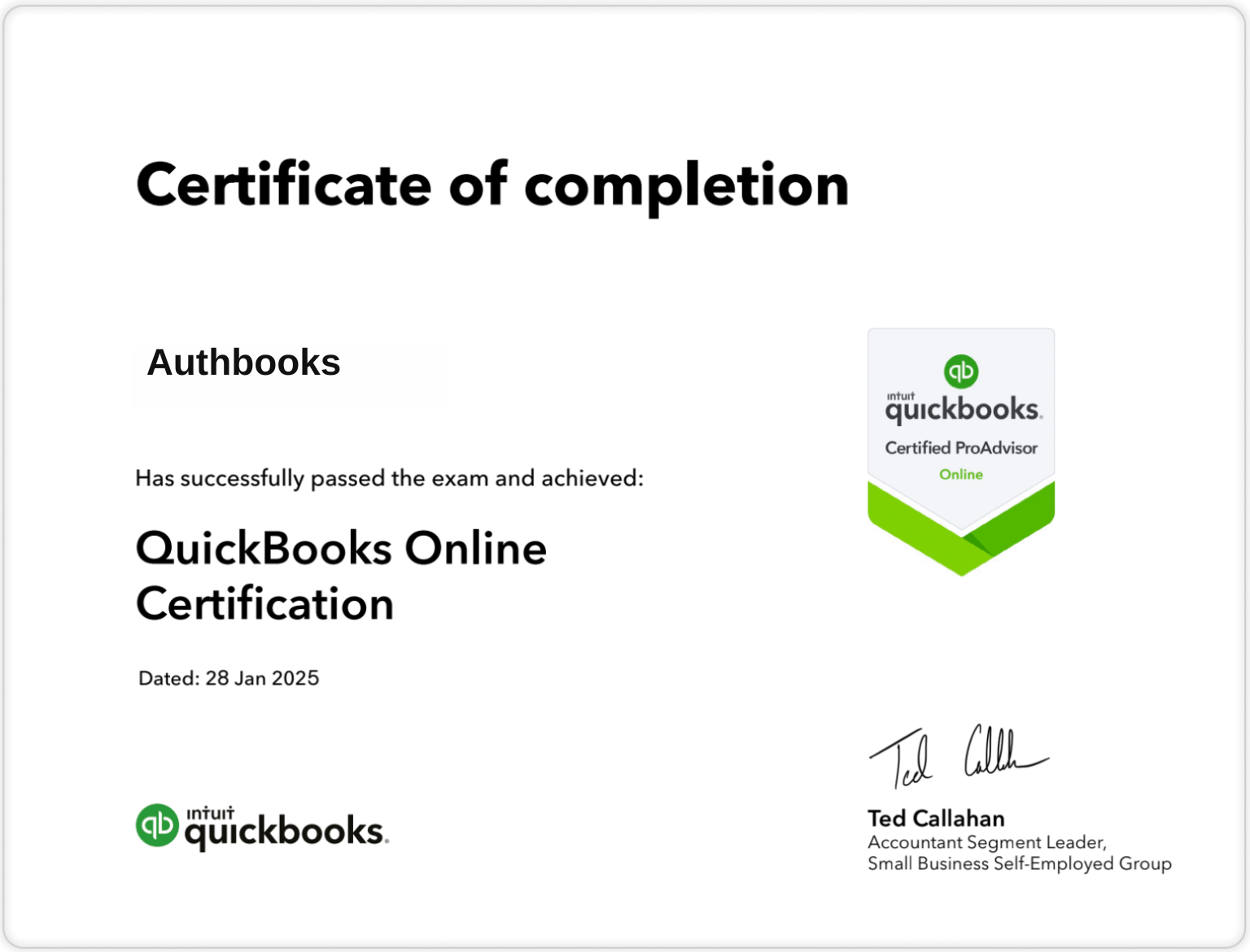 All licenses are issued directly by Intuit. Authbooks is an authorized ProAdvisor for all Intuit products. Authbooks Accounting is an Intuit ®️ Certified
